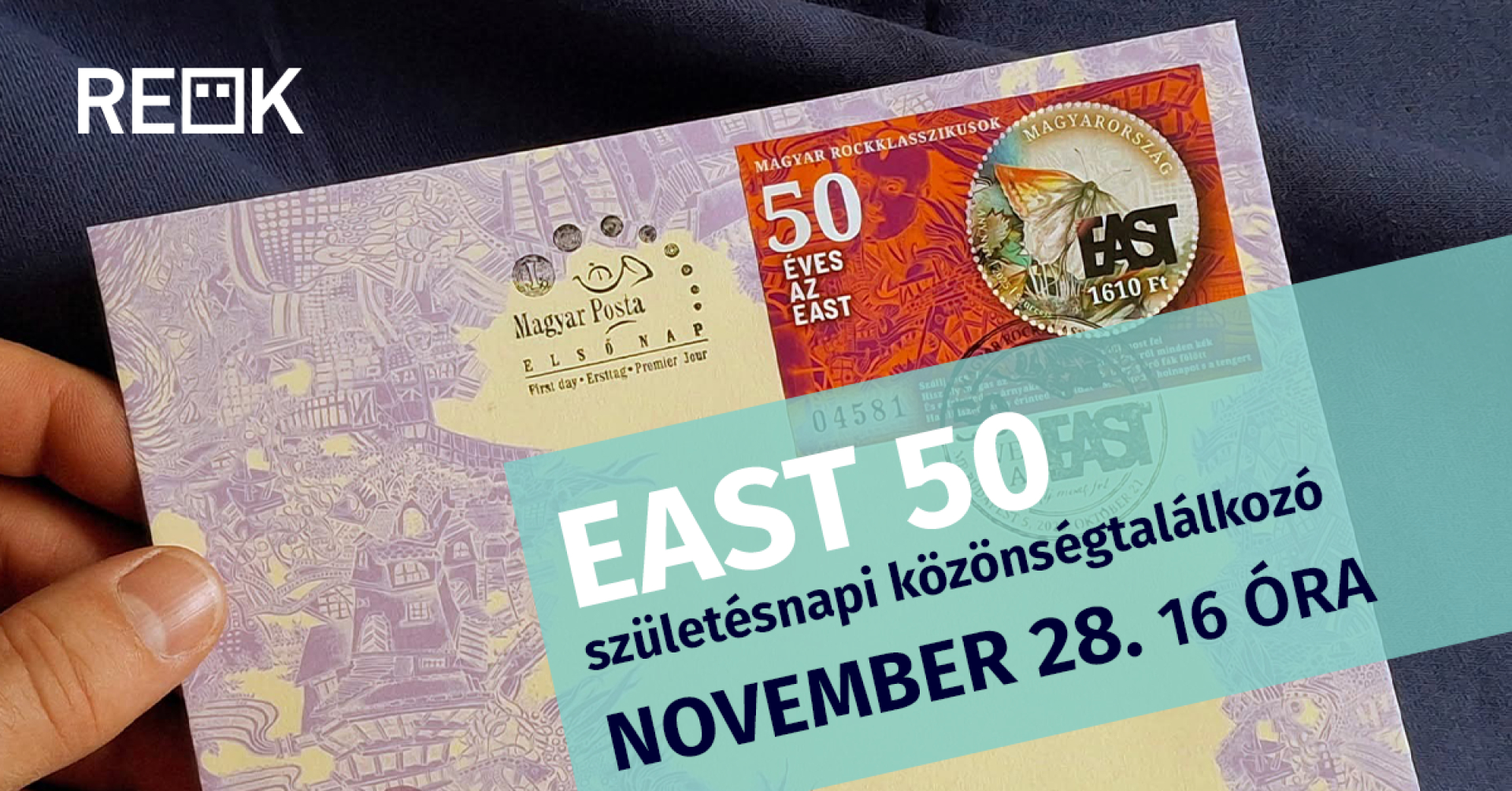 Az ünneplés újabb állomásaként kerül sor az EAST 50 születésnapi közönségtalálkozóra november 28-án 16 órától a Reök-palotában. Az elmúlt évtizedek koncertfelvételeinek részleteivel kísért esten Móczán Péter, Király István és Varga János alapító tagokkal Szurcsik József Munkácsy-díjas képzőművész, a Magyar Képzőművészeti Egyetem nyugalmazott helyettes rektora, a jubileumi bélyegblokk tervezője, aki egykor, képzőművészetis hallgatóként tervezte, rajzolta, festette az EAST lemezborítóit. Az eseményen való részvétel ingyenes, regisztrációhoz kötött, amelyet a Ez az e-mail-cím a szpemrobotok elleni védelem alatt áll. Megtekintéséhez engedélyeznie kell a JavaScript használatát. címen tehetnek meg az érdeklődők. A hangulatos múltidézés végeztével emellett az együttes tagjaival történő, még közvetlenebb találkozásra, az újonnan megjelent kiadványok és a korábbi albumok aláíratására is alkalma nyílik majd a megjelenteknek. EAST-rajongóként tehát semmiképp sem érdemes lemaradni az egyedülálló programról!